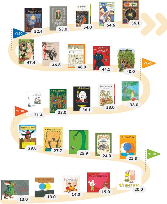 Yondemyでは、子ども一人ひとりに最適な難易度の本をおすすめできるよう、独自に本の難易度の測定方法を開発、ヨンデミーレベルとして数値化しました。