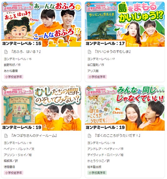 ・本の難易度がひと目でわかる「ヨンデミーレベル」つき……各紹介動画のサムネイルには、本の難易度を示す「ヨンデミーレベル」(※1)を表示。子どもの読書レベルに合った本を選びやすくなり、指定図書にチャレンジする際の目安として活用できます。