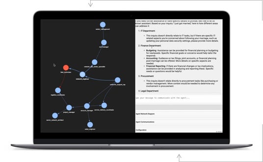 - ノーコード対応で、誰でも使えるAIプラットフォーム、専門用語も不要なインターフェース設計。専門知識がなくても導入・運用が可能なノーコード型の設計により、現場の業務担当者でも扱えます。事前に構築されたマルチエージェントネットワークを使用して、短時間でで、自社独自の環境がカスタマイズ可能です。さらに、ユーザーは専門用語や操作なしに、自然な言葉でエージェントと対話可能。複数チャネル(音声、チャット、画像)での対応も可能です。