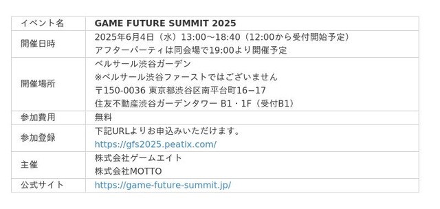 ■ GAME FUTURE SUMMIT 2025 への出展&登壇概要