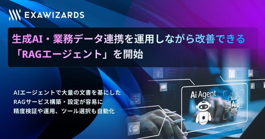 株式会社エクサウィザーズ(東京都港区、代表取締役社長CEO:春田 真、以下エクサウィザーズ)は、業務データに関する回答品質を、AIエージェントで継続的に改善できる「RAGエージェント」の提供を始めます。大量の社内文書を適切に処理して読み込んだり、運用中の精度検証を自動化したりすることで、高精度なRAGのサービスを迅速に構築し、容易に運用できるようになります。AIエージェント開発・運用プラットフォーム「exaBase Studio」上で2025年6月中旬から随時各機能の提供を開始します。