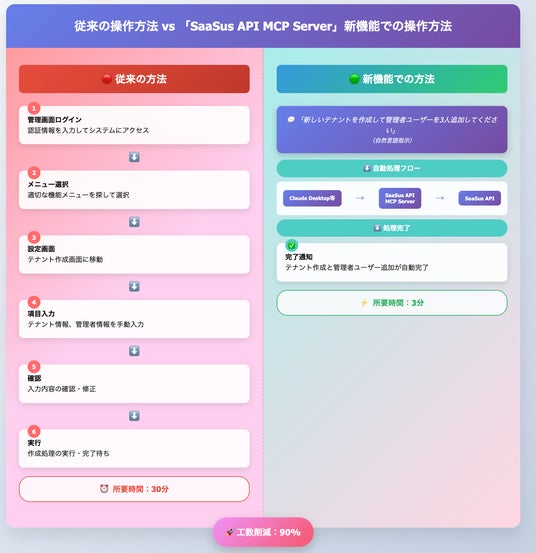 従来の操作方法vs「SaaSus API MCP Server」新機能での操作方法