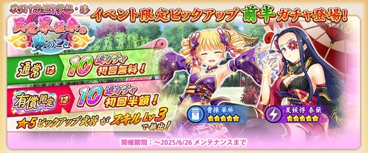 ■コラボ限定ピックアップ!『★5曹操 華琳』と『★5夏侯惇 春蘭』が登場!