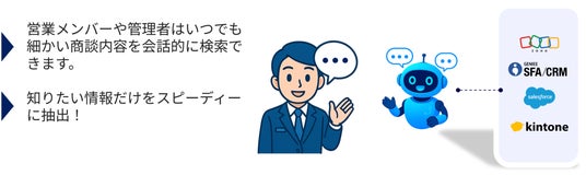 営業メンバーや管理者は商談情報を検索することができ、知りたい情報を会話形式で抽出することが可能です。