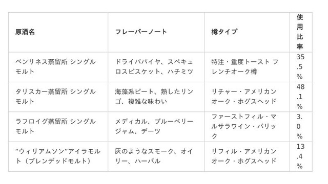 そして第8弾となる本作では、「少数精鋭」による最大限の複雑さを追求。使用するすべての原酒は、フレンチオークの特注樽で追熟されたピーテッドモルトのみという構成で、2007年の第2弾以来の試みに挑戦しています。