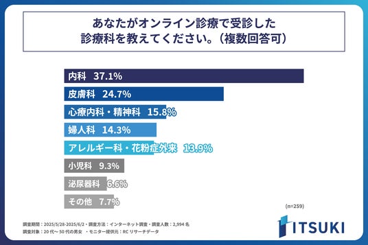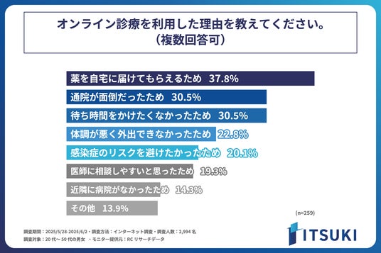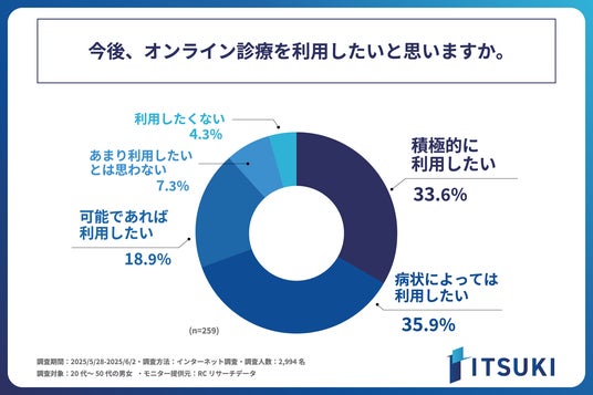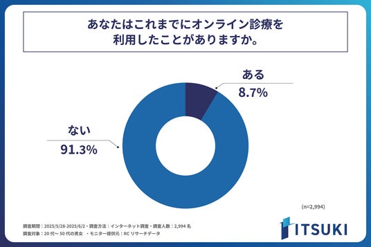 インターネット回線事業を行う株式会社ITSUKI(本社:東京都北区、代表取締役:岩下 一樹)は、20代~50代の男女を対象に「オンライン診療」に関する調査を実施しました。この調査から、20代~50代の男女のオンライン診療の利用に関する実態などが明らかになりました。
