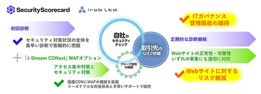 Jストリームでは、CDNサービス「J-Stream CDNext」WAFオプションとして、WAFサービスを提供しています。「SecurityScorecard」と組み合わせることで、セキュリティ課題を明確にしたうえで、平時の大量アクセス対応(CDN)に加え、Webサイトに対するサイバー攻撃にも対応することができ、WebサービスやECサイト等の運用におけるリスクを低減できます。