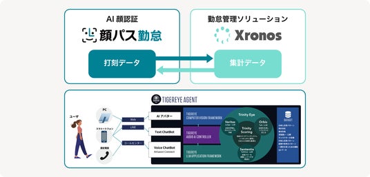 こうした背景のもと、クロノスはTIGEREYEが提供する顔認証打刻サービス「顔パス勤怠&顔パスストレスチェッカー」との連携に向けた準備を進めております。