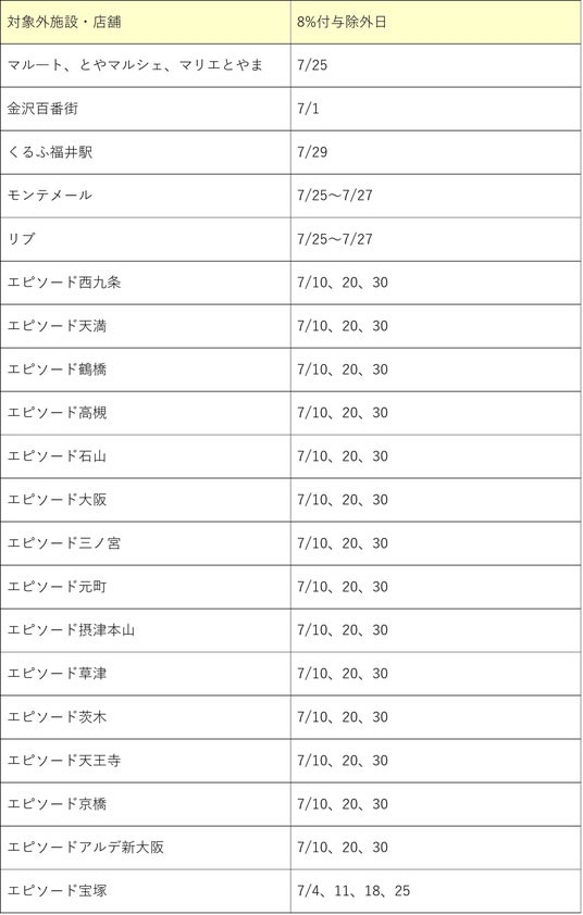 景品表示法の観点で一部対象店において特定日のみ本キャンペーン特典2.の付与対象外となります。