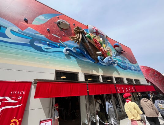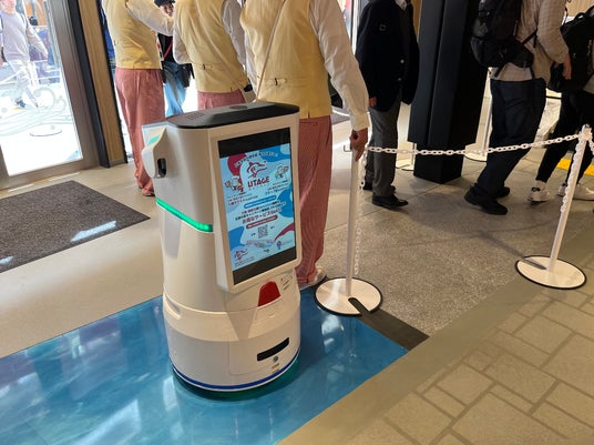 NAOMI-2がパビリオン 宴でスタッフと一緒にお客様への案内を行なっております。