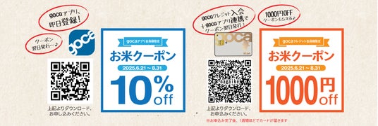 さらにgocaクレジットと連携すれば「お米1,000円OFF優待クーポン」をプレゼントします!(アプリとクレジット連携の翌日にクーポンが届きます。)