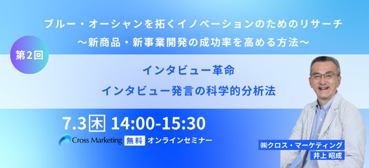 株式会社クロス・マーケティング(本社:東京都新宿区 代表取締役社長兼CEO:五十嵐 幹、以下当社)は、7月3日(木)にセミナーを開催いたします。
