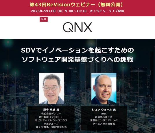 次世代モビリティ分野の情報交流・人的交流を促進するメディアプラットフォーム「ReVision Auto&Mobility」(運営:株式会社InBridges、東京都港区)は、7月11日(金)午前9時から1時間10分間、WEBセミナー『SDVでイノベーションを起こすためのソフトウェア開発基盤づくりへの挑戦』を無料配信します。
