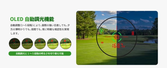 多くの距離計が6倍レンズを採用する中、「U1/U2」は7倍望遠レンズを搭載しており、遠くのピンやグリーンもはっきりと捉えることができます。これにより、視認性が向上し、目視による距離測定の誤差を軽減することが可能です。