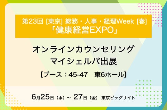 オンラインカウンセリングを提供する株式会社マイシェルパ(以下、当社)は、2025年6月25日(水)~27日(金)に東京ビッグサイトで開催される「第23回 [東京] 総務・人事・経理 Week [春]」内「健康経営EXPO」へ出展します。【出展ブース番号:45-47】