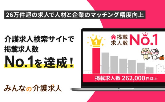 「みんなの介護求人」は、このような労働市場におけるミスマッチを解消すべく、介護業界に特化した就職・転職支援サービスとして展開されており、2025年6月17日時点で掲載求人数26万2,002件を達成しました。これにより、介護専門転職サイトとして日本国内でNo.1の掲載求人数を記録しました。