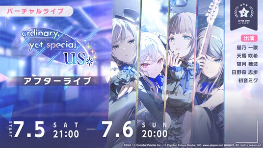 イベント終了後には「バーチャルライブ」でのアフターライブとして、「ordinary,yet special us アフターライブ」を開催いたします。