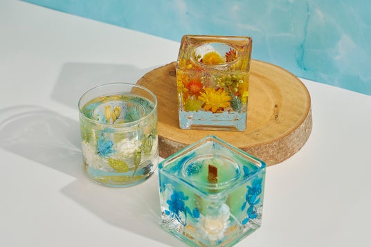 詳細:透明感のあるジェルに、お気に入りの素材を閉じ込めて仕上げるジェルキャンドル。灯すとやわらかな光、飾れば涼しげな彩りを添えてくれます。