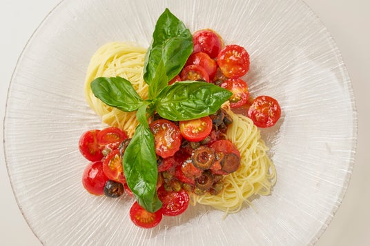 オリーブ・アンチョビ・トマトをふんだんに使用した冷製プッタネスカソースでお楽しみください。