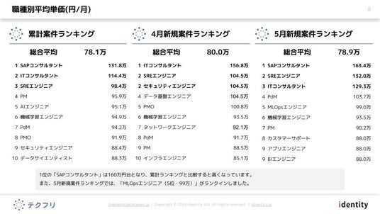 また、5月新規案件ランキングでは、「MLOpsエンジニア(5位・99万)」がランクインしました。