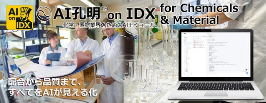 企業データとAIの利活用カンパニー、AIデータ株式会社(本社:東京都港区、代表取締役社長 佐々木隆仁 以下AIデータ社)は、次世代AI+データ連携基盤 IDX による業務最適化を支援する「AI孔明 on IDX」を、 化学・素材業界向けにモジュール化し、『AI孔明(TM) on IDX for Chemicals & Materials』としてリリースいたします。