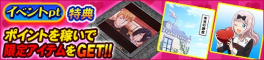 『かぐや様は告らせたい』をイメージした進化型SPキャラ(UR)やSPキャラ、アガリ演出のほか、EX背景、卓背景などがイベントpt特典として獲得できます。