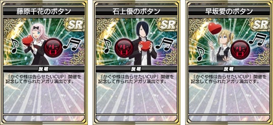 「藤原千花のボタン」「石上優のボタン」「早坂愛のボタン」