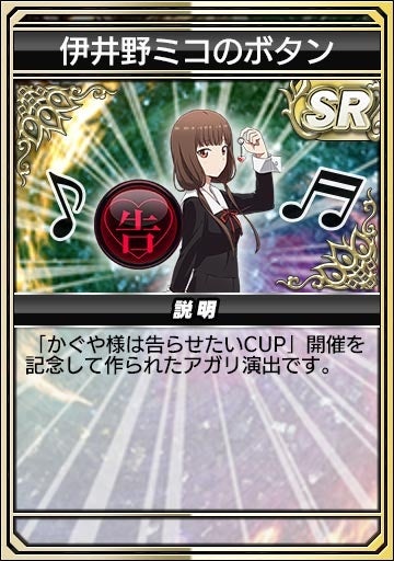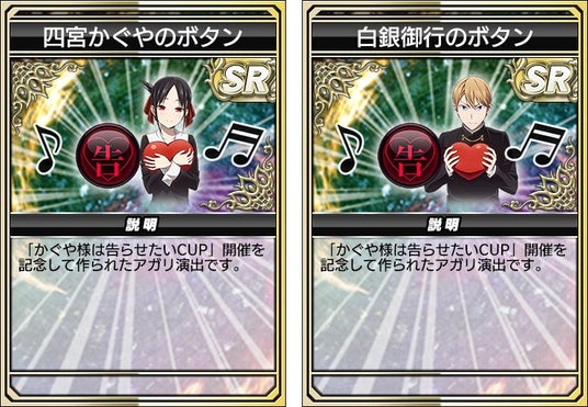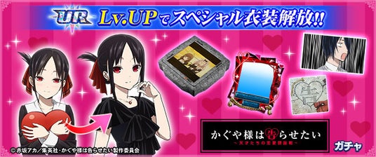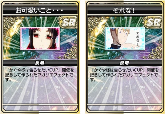進化型SPキャラ(UR)「四宮かぐや」といった『かぐや様は告らせたい』に登場するキャラクターをはじめ、『かぐや様は告らせたい』をイメージしたアガリ演出、卓背景、EX枠、EX背景などコラボアイテム全50種が期間限定で登場します。