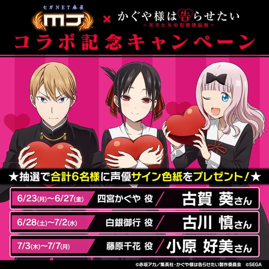 ■セガNET麻雀『MJ』×『かぐや様は告らせたい』コラボ記念Xキャンペーン開催!