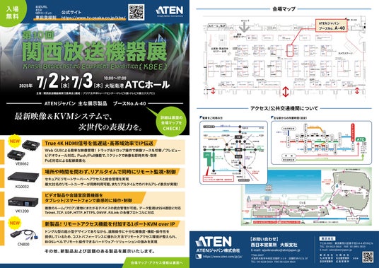 ATENジャパン株式会社(取締役社長:鄧 鴻群[Hans Teng])は、2025年7月2日(水)・3日(木)の2日間、大阪南港ATCホールにて開催される「第10回 関西放送機器展」に出展いたします。