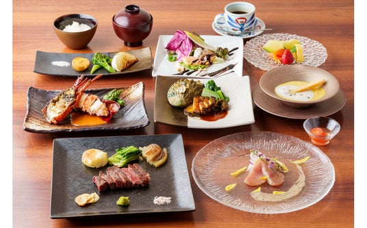 横浜の喧騒を忘れる上質な空間で、シェフが目の前で焼き上げる贅沢な鉄板焼コース。伊勢海老やステーキなど旬の味覚を堪能できます。(寄附金額:147,000円)