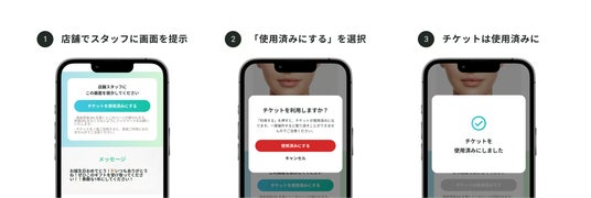 2)店舗スタッフ確認の上、店舗スタッフにてチケットを使用済みにします。