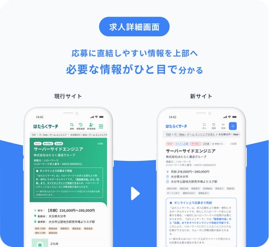 今回のデザインリニューアルでは、求職者の皆さまがより快適に求人情報を閲覧・応募できるよう、ユーザーインターフェースの改善を中心に、以下の3点を重点的に見直しました。