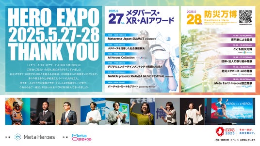 株式会社Meta Heroesは「Society 5.0 × SDGs × HERO」をテーマに事業を展開。主にメタバース(XR)やAIを活用した開発やDX教育施設『Hero Egg』の運営、そして半年で15000名を超えるAIの企業研修を行うと同時に教育・防災・地方創生など社会課題の解決に取り組む企業です。2025年5月大阪・関西万博のEXPOホールにて「AI/メタバースアワード」および「防災万博」を主催。2日間で延べ15,000人が来場し、全国153の自治体・教育機関・団体から後援を受けた大規模イベントとして成功を収めています。