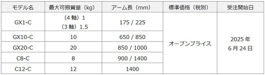 エプソン販売株式会社は、産業用ロボットの新商品として、スカラ(水平多関節)ロボット『GX1/10/20-C』シリーズおよび6軸(垂直多関節)ロボット『C8/12-C』シリーズを2025年6月24日より受注開始します。