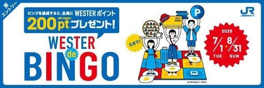 西日本旅客鉄道株式会社(大阪府大阪市北区、代表取締役社長 倉坂 昇治)、株式会社ジェイアール西日本デイリーサービスネット(兵庫県尼崎市、代表取締役社長 中西 豊)、株式会社ジェイアール西日本ホテル開発(京都府京都市下京区、代表取締役社長 伊勢 正文)は、 2025年7月1日(火)~2025年8月31日(日)の期間中、スタンプを集めてビンゴ達成を目指すデジタルスタンプラリーを実施します。