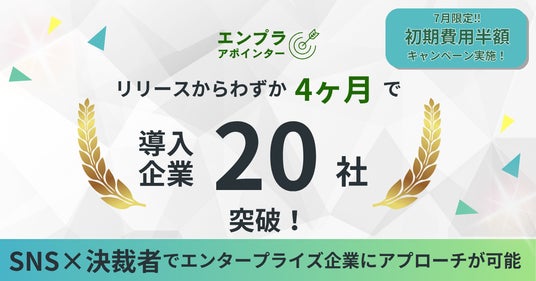 また、導入社数20社突破を記念し、7月限定で初期費用半額キャンペーンを実施いたします。この機会にぜひ、決裁者アポイントに特化したエンプラアポインターの導入をご検討ください。