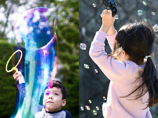 連続でシャボン玉を放出するバブルガンや大きなシャボン玉などが楽しめる。会場内にシャボン玉を飛ばして盛り上げよう。
