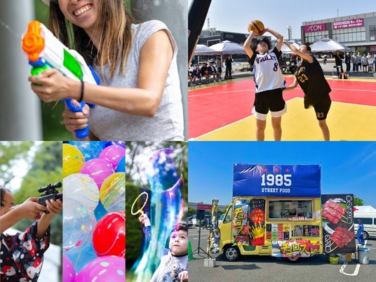 コンテンツには、水鉄砲を使ったサバゲ―が楽しめる「ウォーターガンバトル」や水鉄砲を使った射的「ウォーター射的」「スーパーボールすくい」「シャボン玉」など、子どもから大人までワクワクするような催し物を用意。さらに日本の夏の風物詩「盆おどり」や臨場感あふれる熱い試合を間近で観戦できる「3x3バスケットボール」の試合なども実施します。イベント期間中は、キッチンカーも出店するので、心もお腹も満たされること必至。2025年7月19日(土)~8月28日(木)まで毎日、開催しているので、今年の夏の思い出作りに足を運んでみてはいかが?