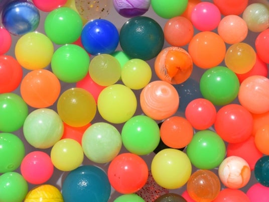 水の上にプカプカと浮かぶスーパーボールをポイですくう催し物。