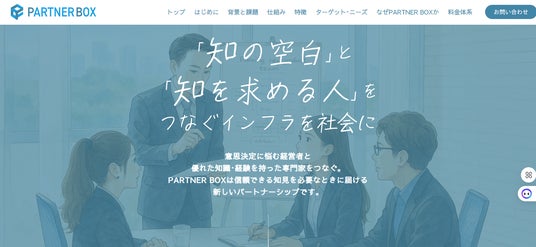 「PARTNER BOX」は、スタートアップや中堅・中小企業が直面する経営課題を再構成し、スピーディに実行支援を提供するサブスクリプション型の経営コンサルティングサービスです。