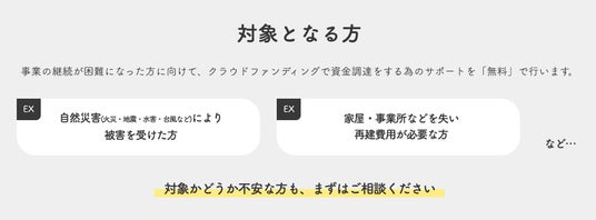 そんな「どうしたらいいかわからない」という声に応えるべく、ファーストイノベーションは日本最大級のクラウドファンディングプラットフォーム「CAMPFIRE」の公式パートナーとして、災害被災者を対象としたクラウドファンディング立ち上げ支援サービス「再出発つながり応援」をリリースいたしました。