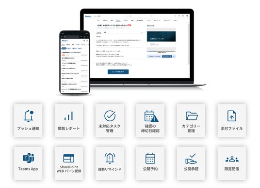 Notify は、情報を「届ける」ことはもちろん、「届いたその後の対応」を可視化するため、情報伝達の質を高めます。