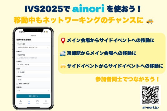 株式会社Curio(本社:東京都港区、代表取締役:平山真梨花)は、タクシー相乗りサービス「ainori(アイノリ)」を正式リリースしたことをお知らせいたします。β版では大阪・関西万博の来場者を中心に累計1万人以上に利用され、7月に開催予定の国内最大規模のスタートアップカンファレンス「IVS2025」での提供が決定しました。