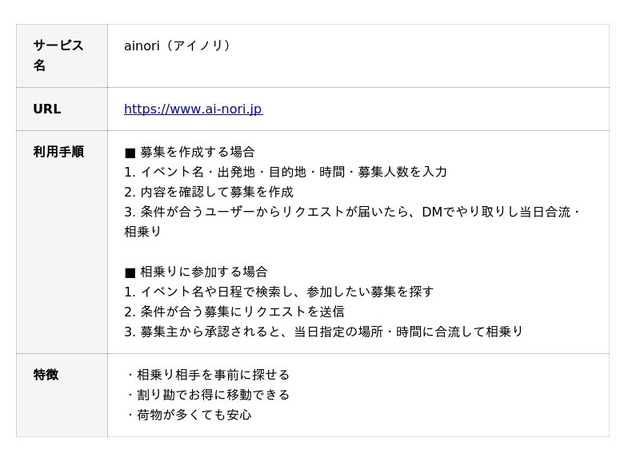 【混雑時にスマート移動】イベント向けタクシー相乗りサービス「ainori」正式リリース