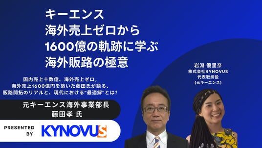 株式会社KYNOVUS(本社:東京都港区、代表取締役:岩淵優里奈)は、無料オンラインセミナー「キーエンス海外売上ゼロから1600億の軌跡に学ぶ、海外販路開拓の極意」を2025年7月15日(火)に開催いたします。