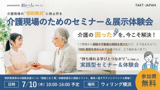 株式会社TAKT-JAPAN(本社:横浜市)は、2025年7月10日(木)、ウィリング横浜901号室にて「介護ロボット・ICT展示会」との同日開催で、特許取得済みの相続支援ツール「相続これ1冊」体験型展示など福祉の複合型イベントを初開催します。