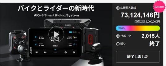 慕晟株式会社(AKEEYO)は、Makuakeで展開中のバイク用スマートライドモニター「AIO-6」アンコール販売プロジェクトが700万円を突破し、初回プロジェクトと合わせて総額8,000万円を達成したことを発表いたします。