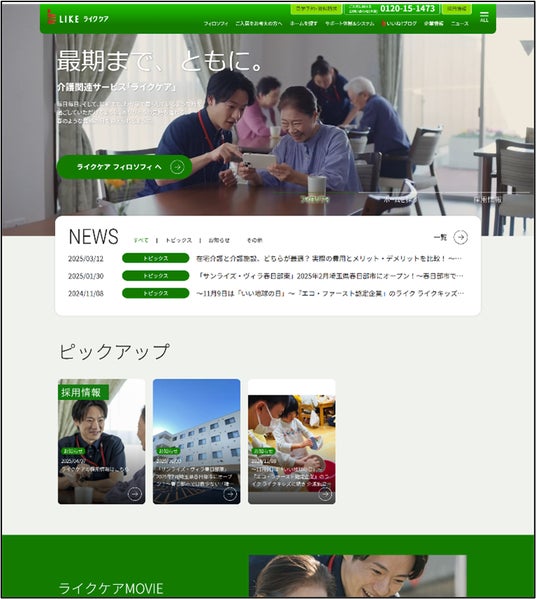 そうした時代の変化のなかで、私たちが大切にしている「ご入居者様一人ひとりと真摯に向き合う姿勢」を、より多くの方にわかりやすく、まっすぐに伝えていきたいという想いから、今回のコーポレートサイトのリニューアルに至りました。単なる施設情報の提供にとどまらず、私たちの想いや取り組み、そしてライクケアが追求する理想の介護がしっかりと伝わるよう、構成および言葉やデザインを全面的に見直しています。