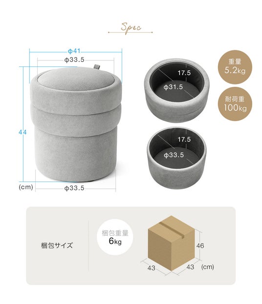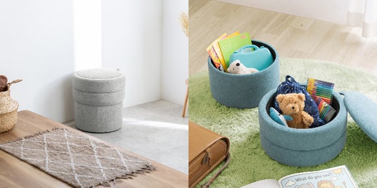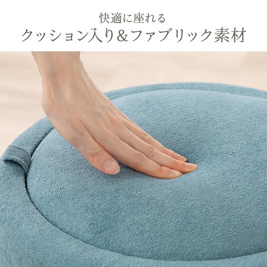中身が収納できるのに、スツールとしての安定感も抜群。耐荷重100kgなので大人が座っても安心です。ふわっと柔らかなファブリックと中材のウレタンが、快適な座り心地を提供します。